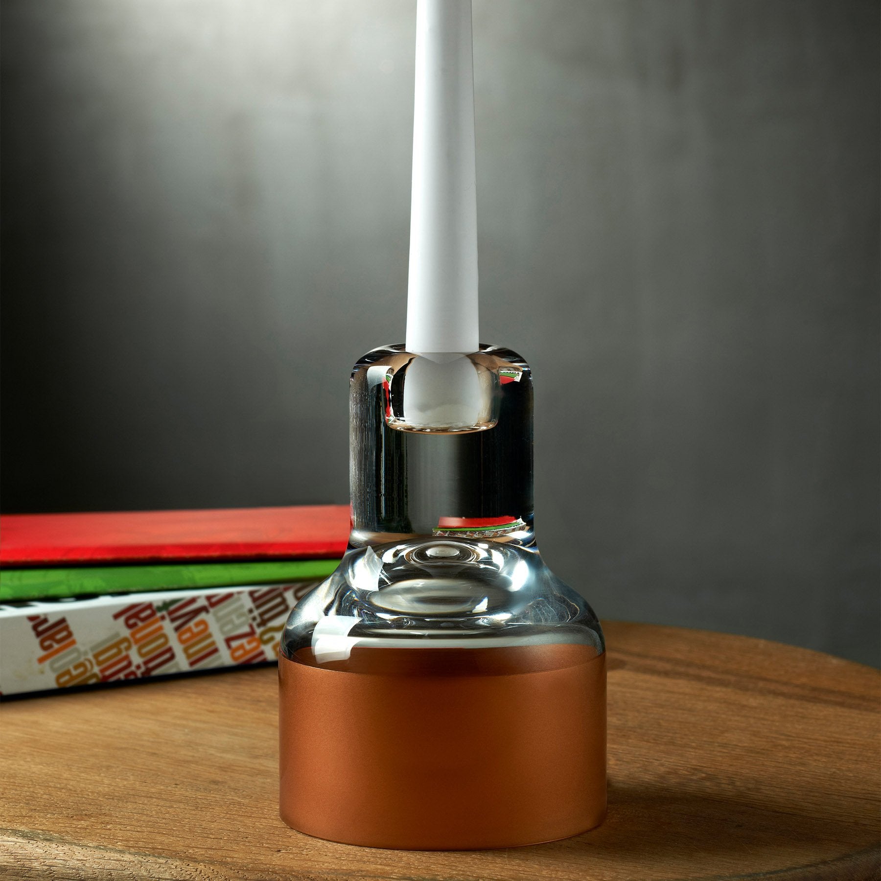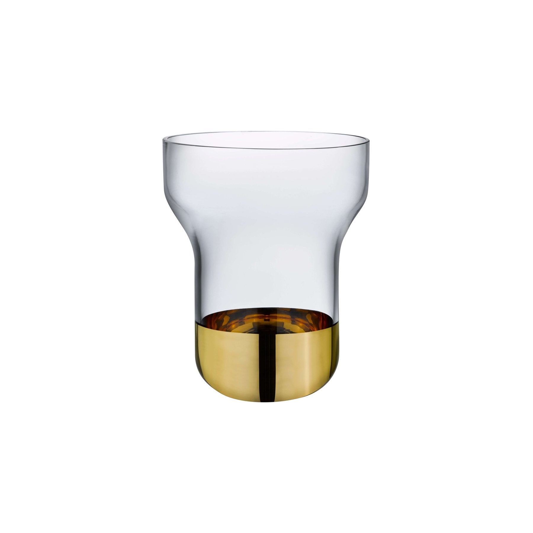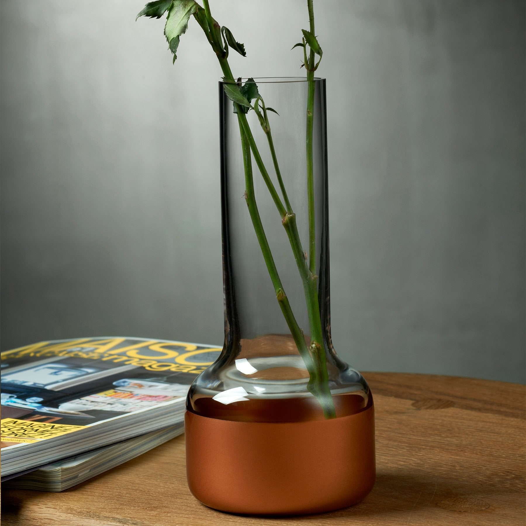 This tall NUDE Contour vase with copper base combines a crystalline top with a golden rim surrounding its base. The dramatic, layered look translates into an item that's at once solid and ethereal — a true design classic, remarkable in its simplicity.
