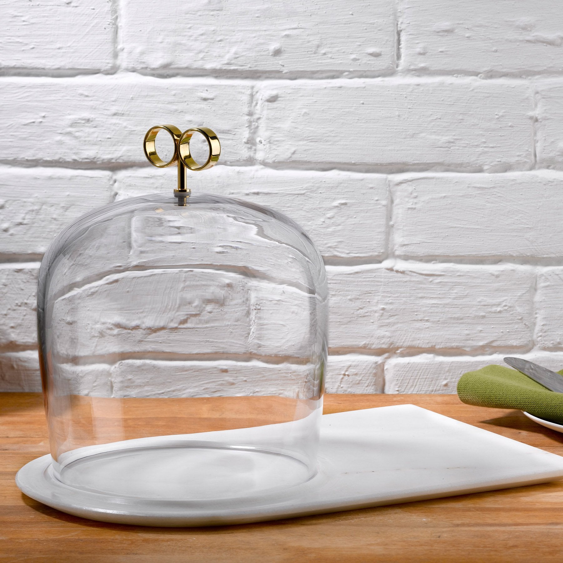 Cupola Cake Dome Medium with Brass Handle and Marble Base