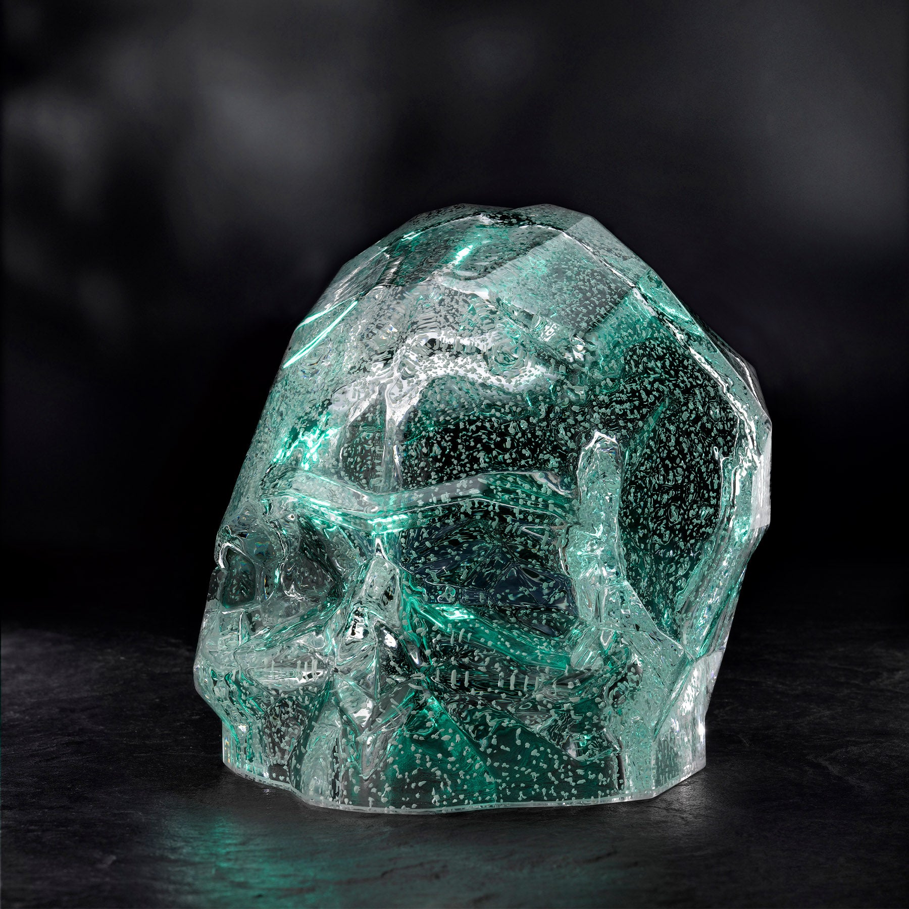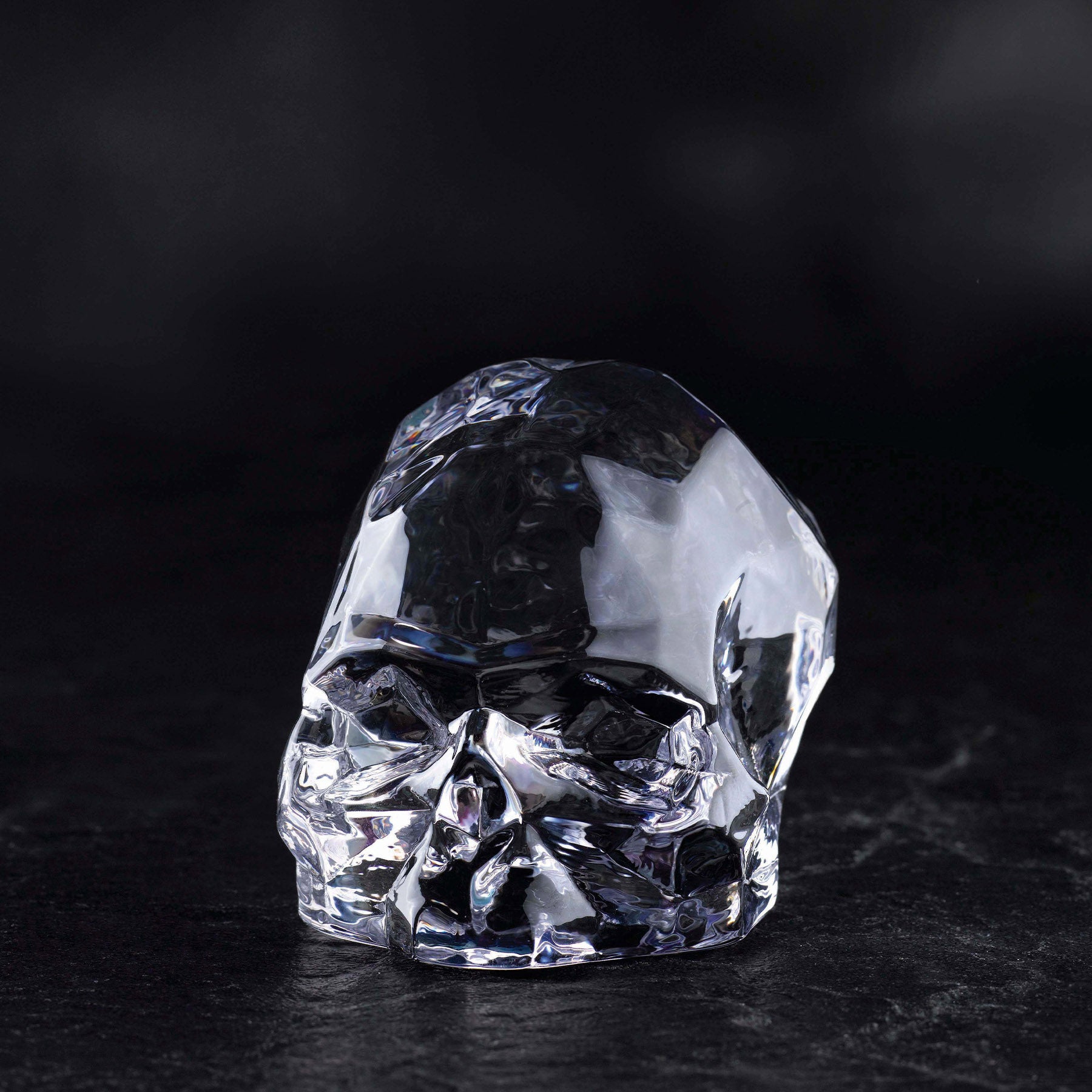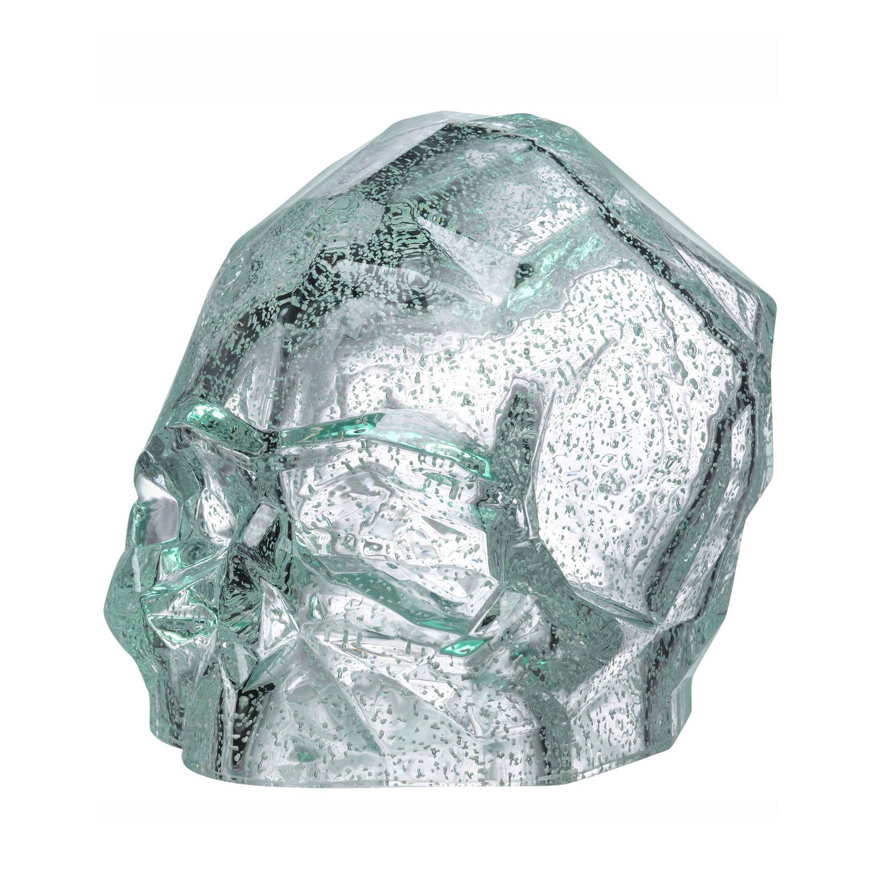 This large-sized NUDE Memento Mori sculpture will stand proudly on any table setting — whether used as a paperweight or admired solo for its aesthetic value. Cast from faceted crystalline glass in an opal white hue, the skull-shaped design offers a daily reminder that life is precious.